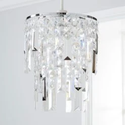 Featuring cascading crystal effect gems, this clear hanging pendant light fitting is available to purchase online.