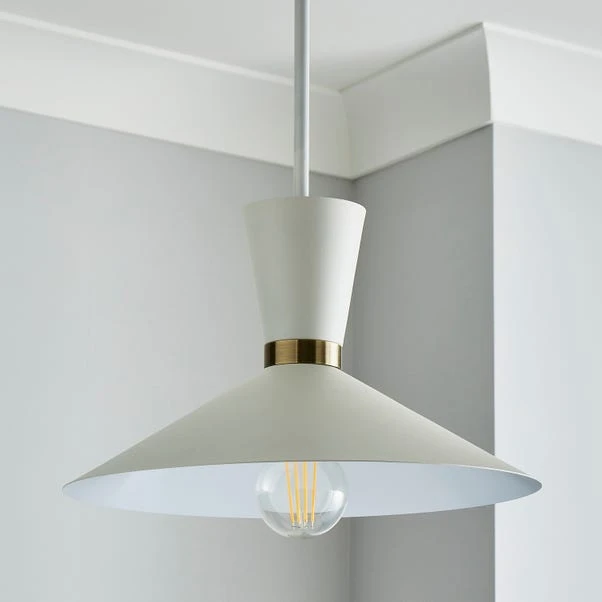 Bring a modern feel to your home with the elegant Archie Easy Fit Pendant. Available in a choice of colours with matching family items available, this stylish easy fit pendant features a retro style shade with a stunning matte finish and satin brass metal details.