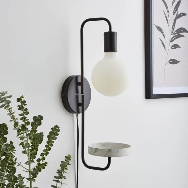 Dunelm Aubrey Exposed Bulb Shelf Wall Light Black And Faux Marble