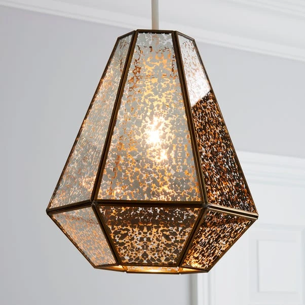Elegantly styled in a classic diamond shape, this beautiful unwired pendant shade features distressed mercury glass finish. Suitable to use with LED lamps, this classy pendant shade is a perfect statement piece for any living space.