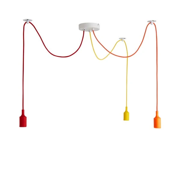 This fun multicolour Flex 3 Light Spider Cluster Ceiling Fitting has a simple yet contemporary design that will complement an array of home decors beautifully. Featuring a white base with three height adjustable multicoloured silicone rubber flex, perfect for adding a unique touch to your kids room. This piece is dimmable compatible and matching family items are available, helping to coordinate your home to create your desired look.