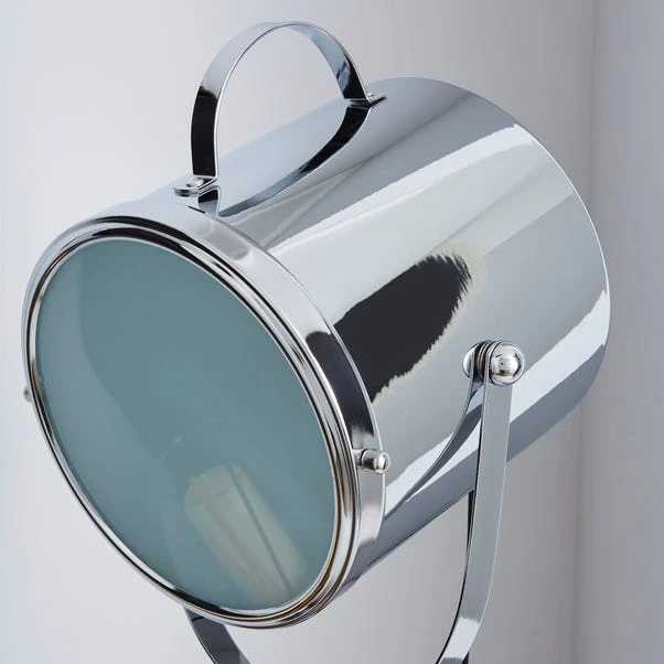 Crafted with a standing tripod design and traditional chrome and wood finish, our modern wooden camera floor light is supplied with a two-metre cable.