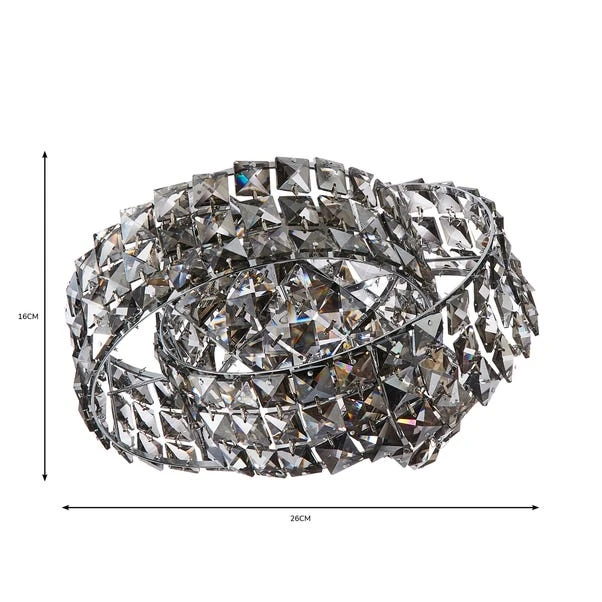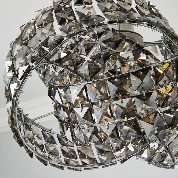 Make a bold statement in your room with this luxurious Cecille easy fit pendant, crafted with real glass crystals and a contemporary chrome finish. The Cecilie is unique in design with three rings that are intertwined around each other, this easy to fit pendant will instantly add a glamorous touch any home décor. This stunning pendant is available in a choice of clear, smoke & champagne crystals.
