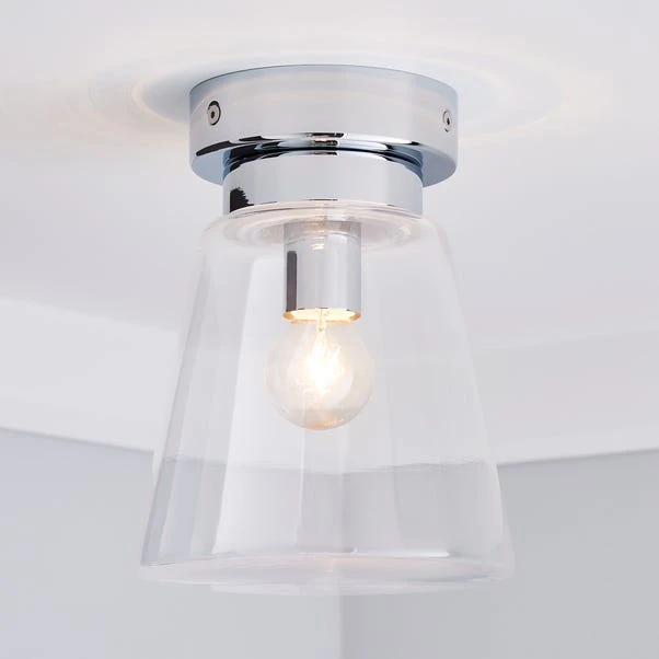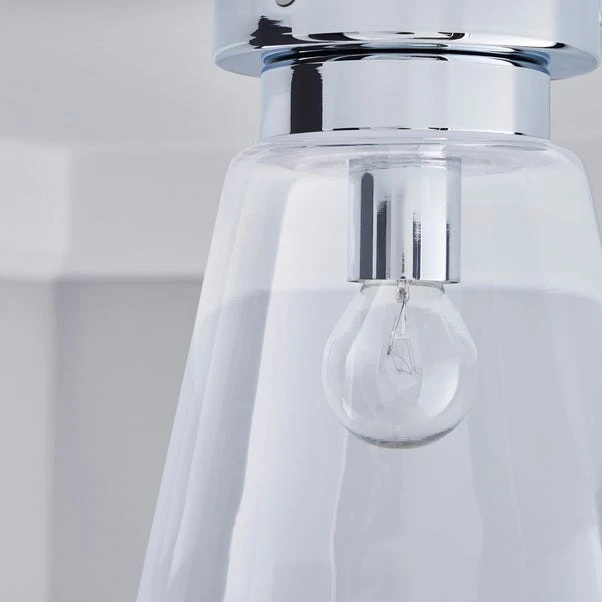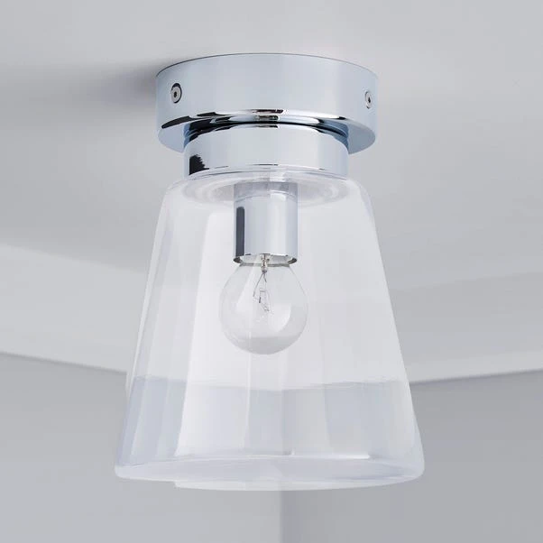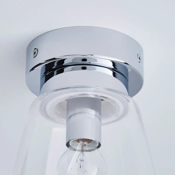 Beautifully designed, this bathroom flush light features a clear glass shade, with a chrome effect base and dimmable feature.