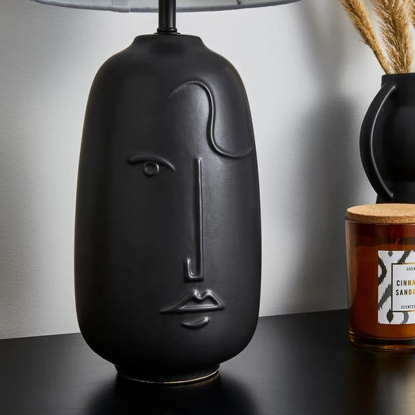Featuring a contemporary design, the Face table lamp offers a stunning on trend design that would give any home a modern look. This table lamp is complete with an inline switch, the Face table lamp is designed with a stunning matt glaze base with an interesting face detail design, perfectly paired with a faux linen shade. This table lamp is available in Black and Ivory.