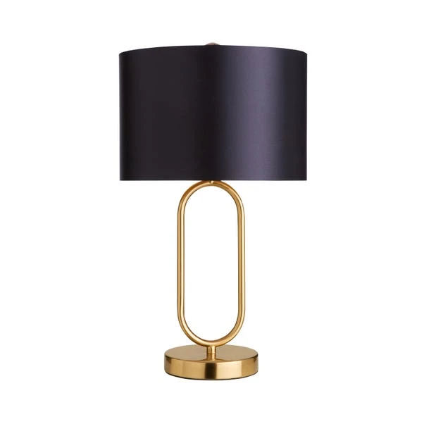 Introduce a modern and unique touch to your home with the Hanna Table Lamp, designed beautifully with a Black faux silk shade and finished with a Gold metal detailed base, complete with a black braided fabric cable. This Pendant is both stylish and attractive, pair it with matching Hanna pieces to coordinate your home décor.