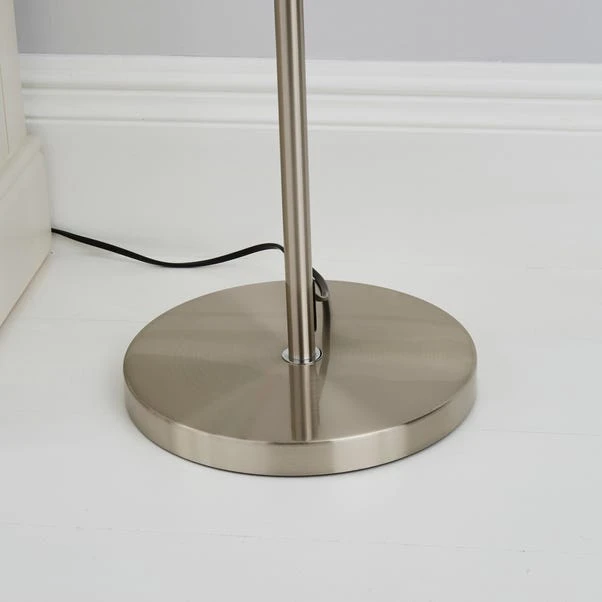 Introduce a beautiful and chic element to your home décor with the Hemming Extendable Floor Lamp, featuring a solid durable steel base with a smooth chrome finish. The design of the crisp white pongee shade adds a modern touch to your home décor.