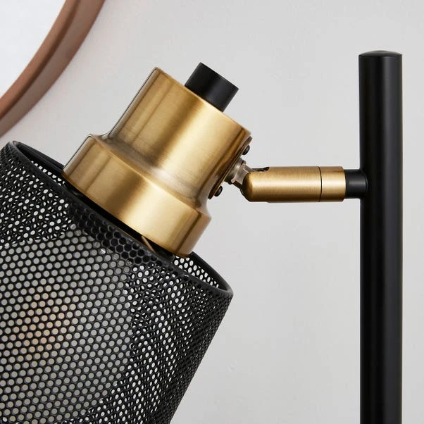 Offering a gorgeous modern style, the Idris task lamp is finished in a contemporary matt black finish with contrasting antique brass features for an industrial look. Perfect for your desk or workspace, this fitting features an adjustable fixture s with metal mesh shades and an in-line switch.