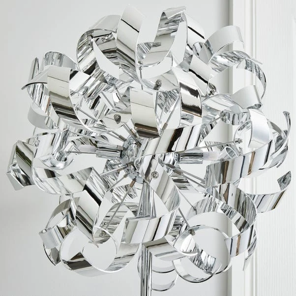 Featuring a striking chrome plated floor lamp, the Iris 4 Light Floor Lamp would make an eye-catching addition in any home. Crafted with an acrylic swirled circular shade that creates an interesting light pattern against the wall, paired with a chrome metal base and a 1.5m cable foot switch. This stylish piece will look luxurious in the most loved rooms of your home. Complete the look with matching family items from the Iris range.