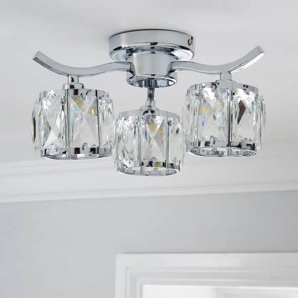 The Kleio semi flush dimmable light fitting boasts a very classy design, featuring 3 curved sculpted arms with a beautiful glass jewel beads design.