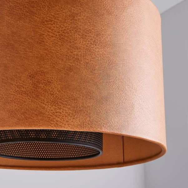 Available in a choice of black and tan finishes, the Larset faux leather drum shade is perfect for bringing a touch of contemporary luxe styling to your home. This stunning shade is suitable for all standard ceiling fittings and comes complete with a complementing matt black steel diffuser.