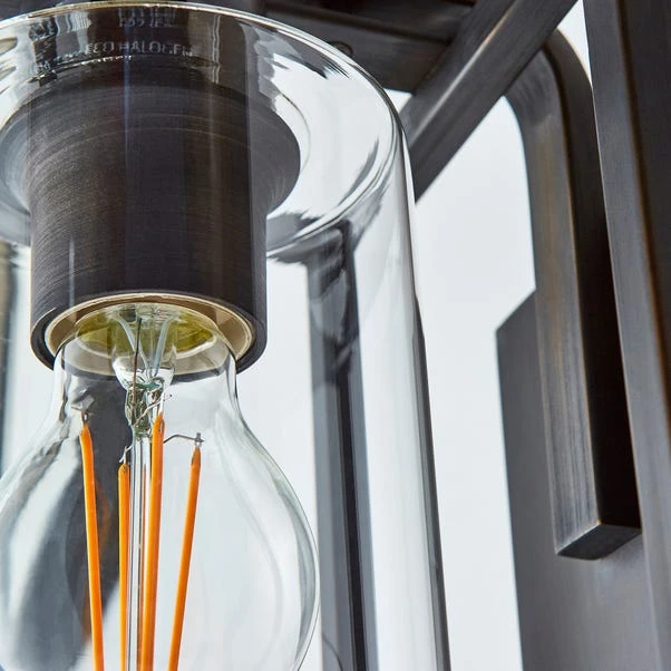 This industrial style wall light is a perfect way to add a contemporary touch to your home, featuring a glass shade and a painted bronze metal frame for a beautiful appearance. Excellent for introducing a rustic element to your living space. This piece is dimmable compatible, making it both an attractive and practical product. This wall light is not suitable for outdoor use.