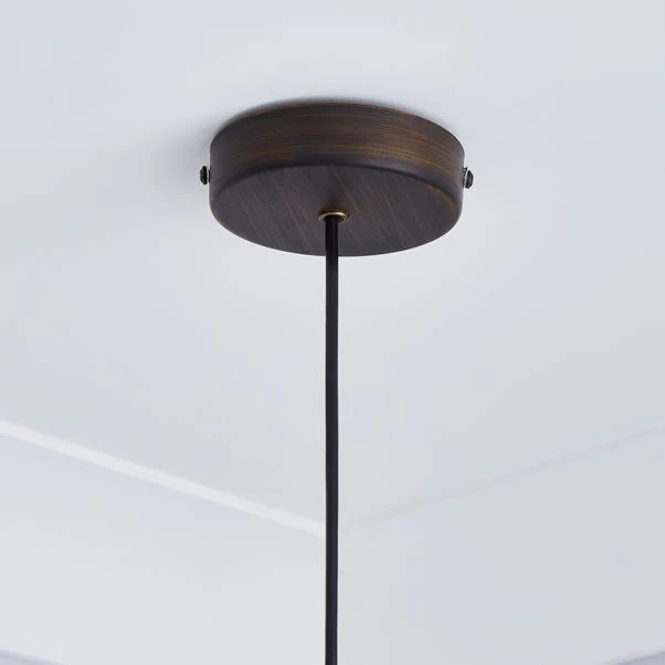 Designed with a bronze painted metal frame that encases a clear glass shade for an industrial appearance this ceiling fitting will add a retro feel to any home. This piece is dimmable compatible, making it both an attractive and practical product.