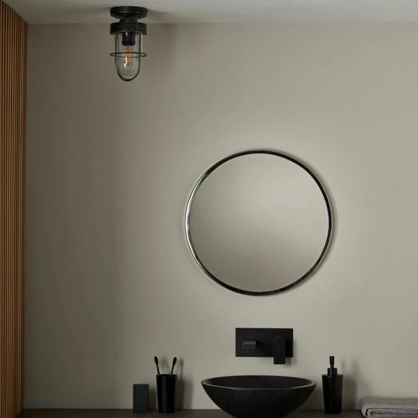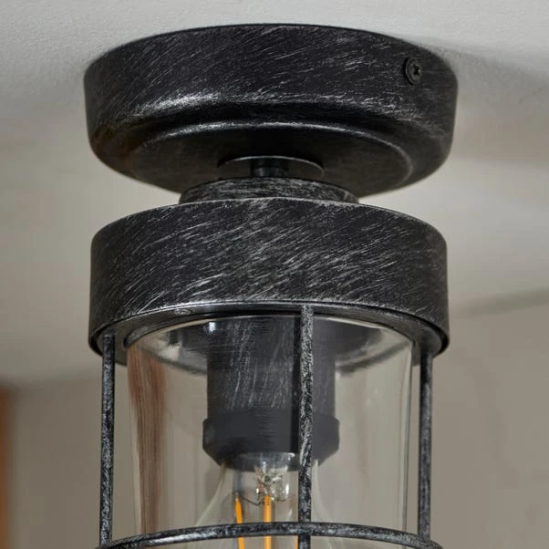 Introduce a modern contemporary look to your home with the Marine Industrial Ceiling Fitting. This industrial style flush fitting is finished in aged pewter paint, and a clear glass shade. Complete with IP44 rating, so its suitable for use in the bathroom. The Marine flush fitting is dimmable with a compatible bulb and light switch, as well as suitable for use with LED lamps. Matching items from the Marine range are available to help coordinate your home.