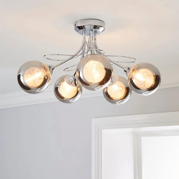 Dunelm Mateo 5 Light Glass Chrome Semi-Flush Ceiling Fitting