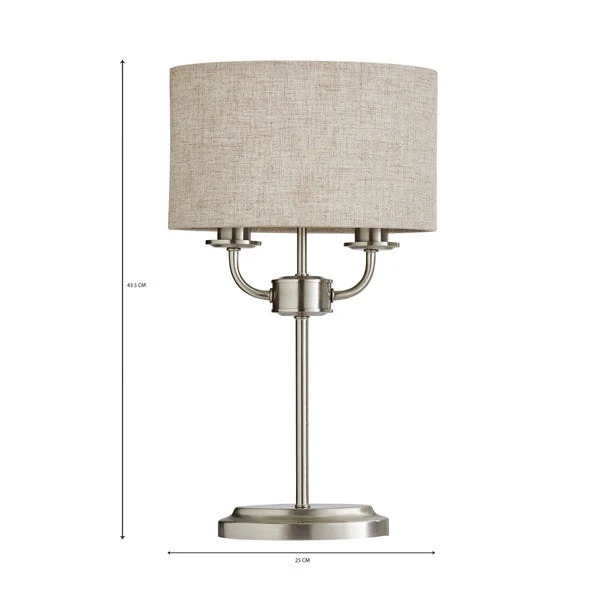 With its decorative candlestick arms and stepped oval base, the chrome-finished Preston Oval table lamp offers a classic space-saving design, perfect for adding a sophisticated edge to your home décor. This lamp comes complete with a natural linen fabric shade and 150cm clear cable with an inline switch.
