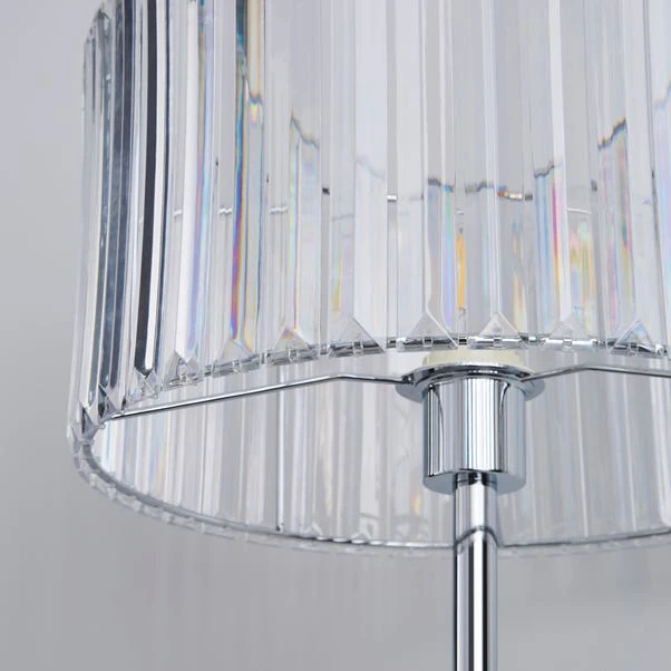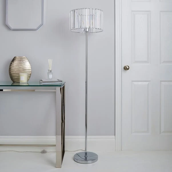Inject a glamorous touch to your home décor with the Prism Floor Lamp, crafted with a durable steel and Acrylic prism shade and completed with a sleek chrome finish for a modern appearance. This light also comes with a cable length of 150cm.