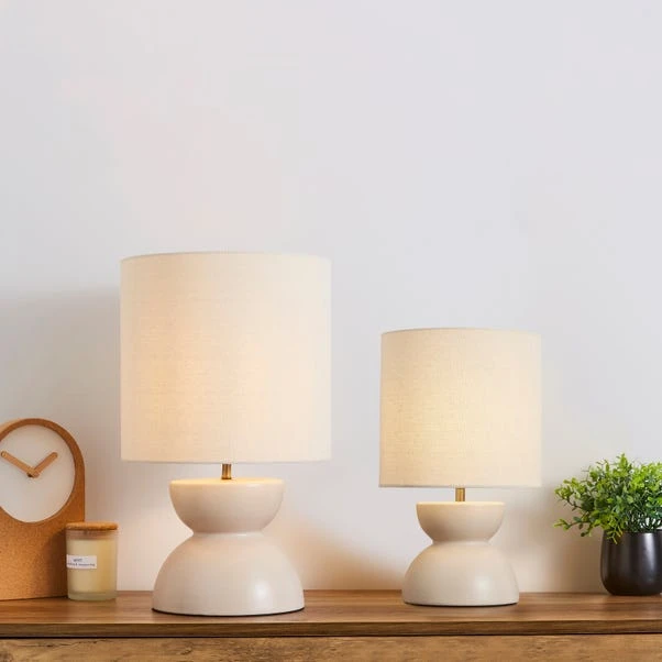 Boasting a chic contemporary design, this Quebec Table Lamp adds a lovely touch to any room. This lamp is supplied with an inline switch and is compatible with LED lamps. In a sand colourway this lamp compliments any side table.