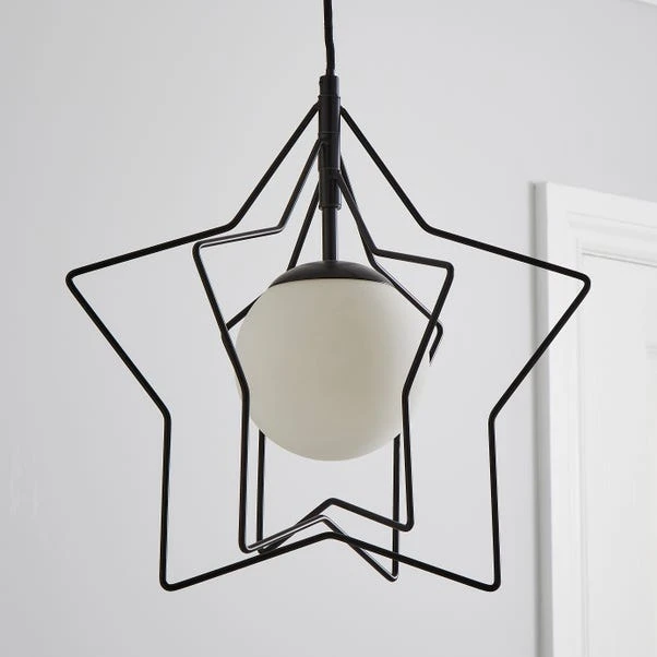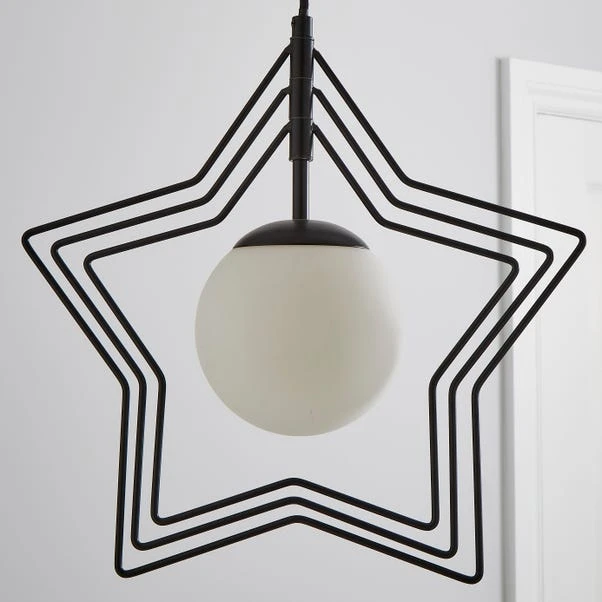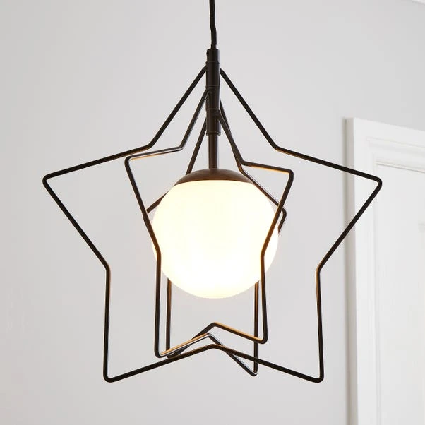 Available in a selection of stylish finishes the Star ceiling fitting boasts a fun, modern design, perfect for childrens rooms. This unique fitting features three star frames that swivel independently around the white glass shade, creating a gorgeous look that would brighten up any space.