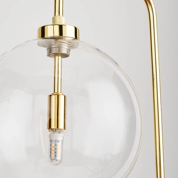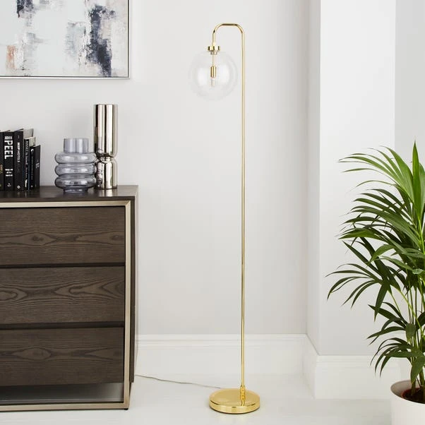 Simple and elegant, this Tanner Floor Lamp features a round glass shade which shows an exposed bulb for that modern finish. It comes complete with a sturdy base and a 1.8m cable which features a foot on and off switch. This lamp is available in another colour to suit any home decors and has matching family items available to purchase separately.