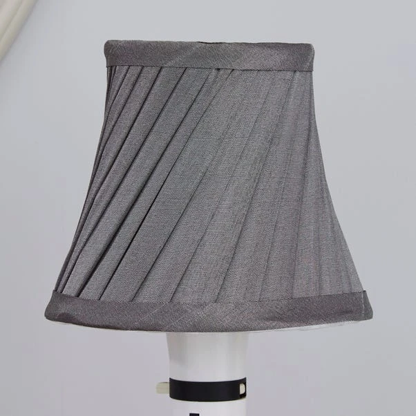 Designed with a grey colourway, this satin candle lamp shade offers an attractive twisted pleat texture.