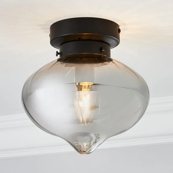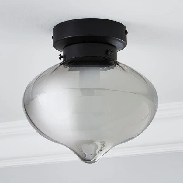 Dunelm Voyager 1 Light Smoked Flush Ceiling Fitting