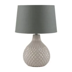 Perfect for your compact home, this Gemini table lamp has a space-saving design that features an embossed design. Just buy an ES GLS bulb and get your room lit up in no time.